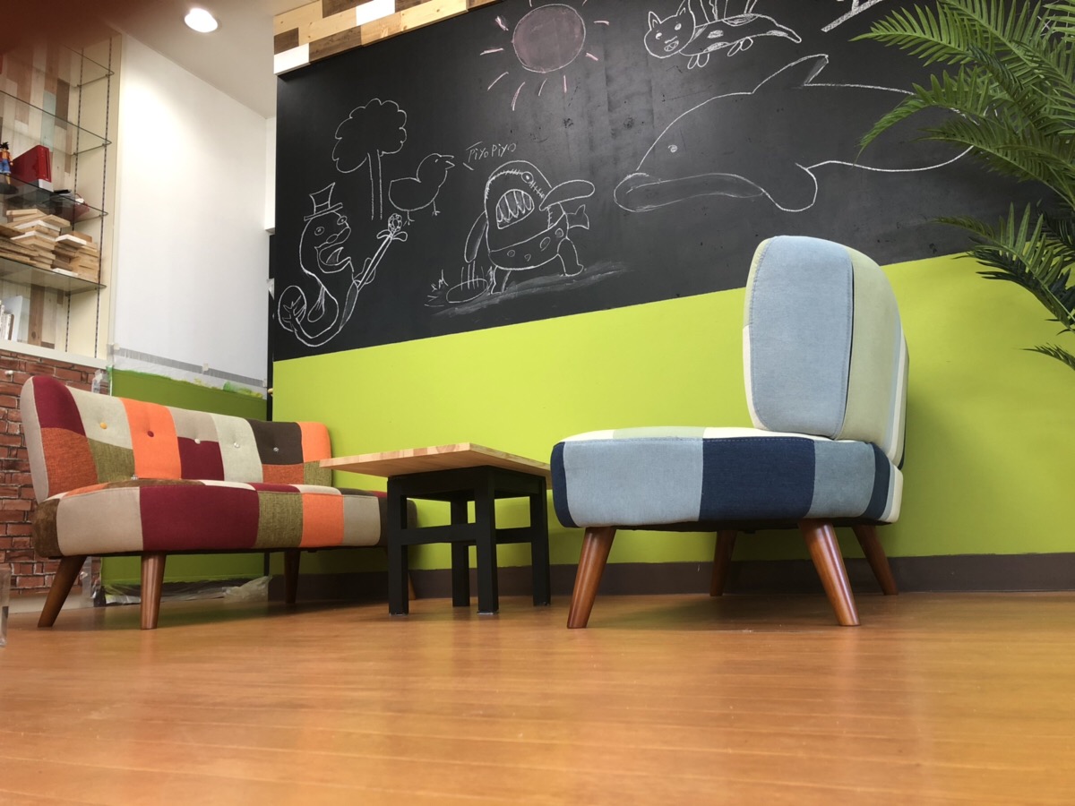 壁の色とソファーの柄がめずらしいので、じつは隠れたインスタ映えスポットにもなってる!?