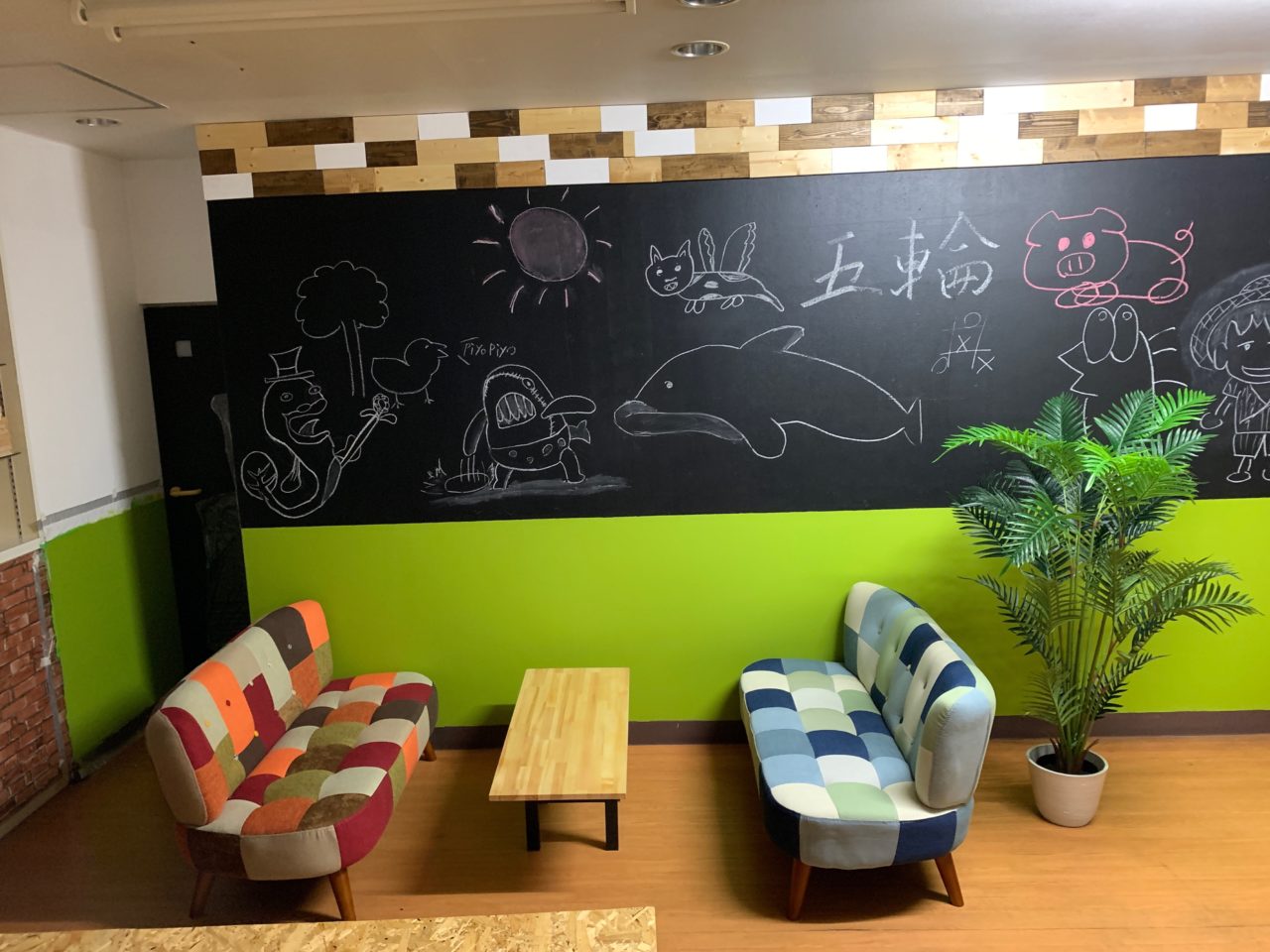 後ろの黒板の絵が気になって仕方ない方もいらっしゃるのではないでしょうか?