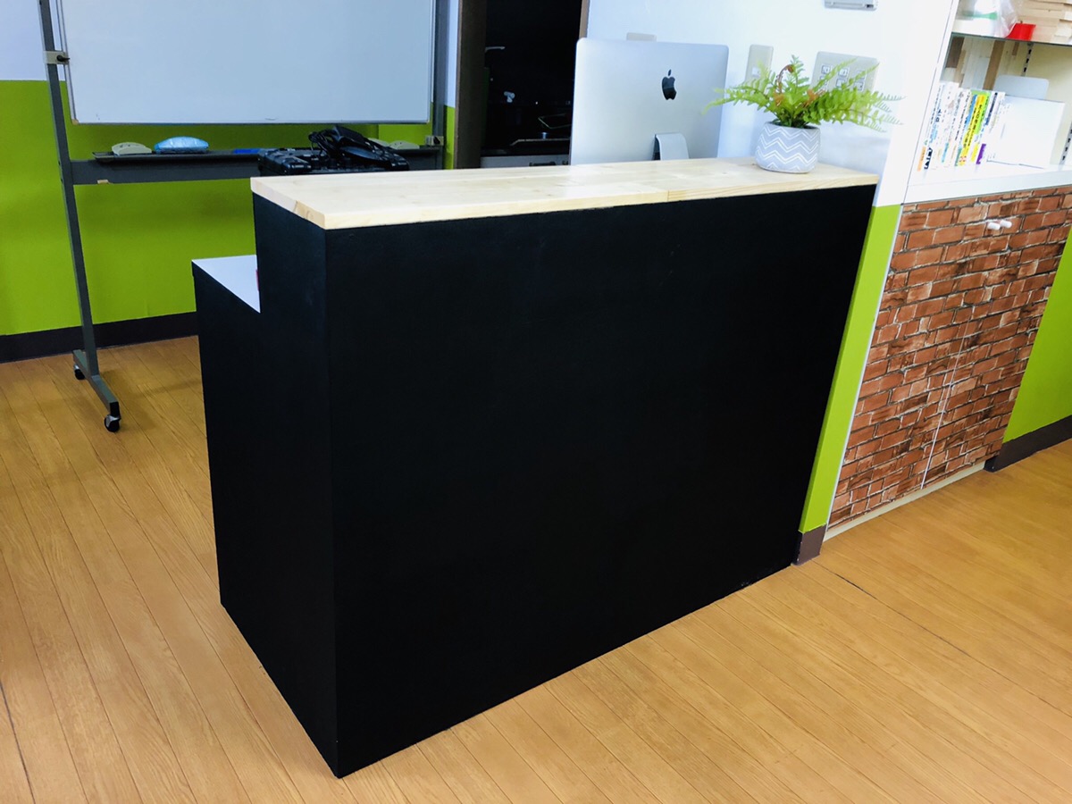 ボロボロだったカウンターがまるでバーカウンターのような受付に!
