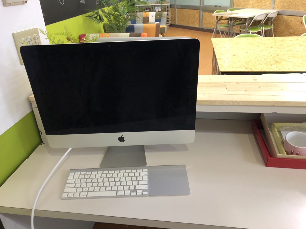 カウンターにはスタッフさん用のパソコンMacとお花も設置します。